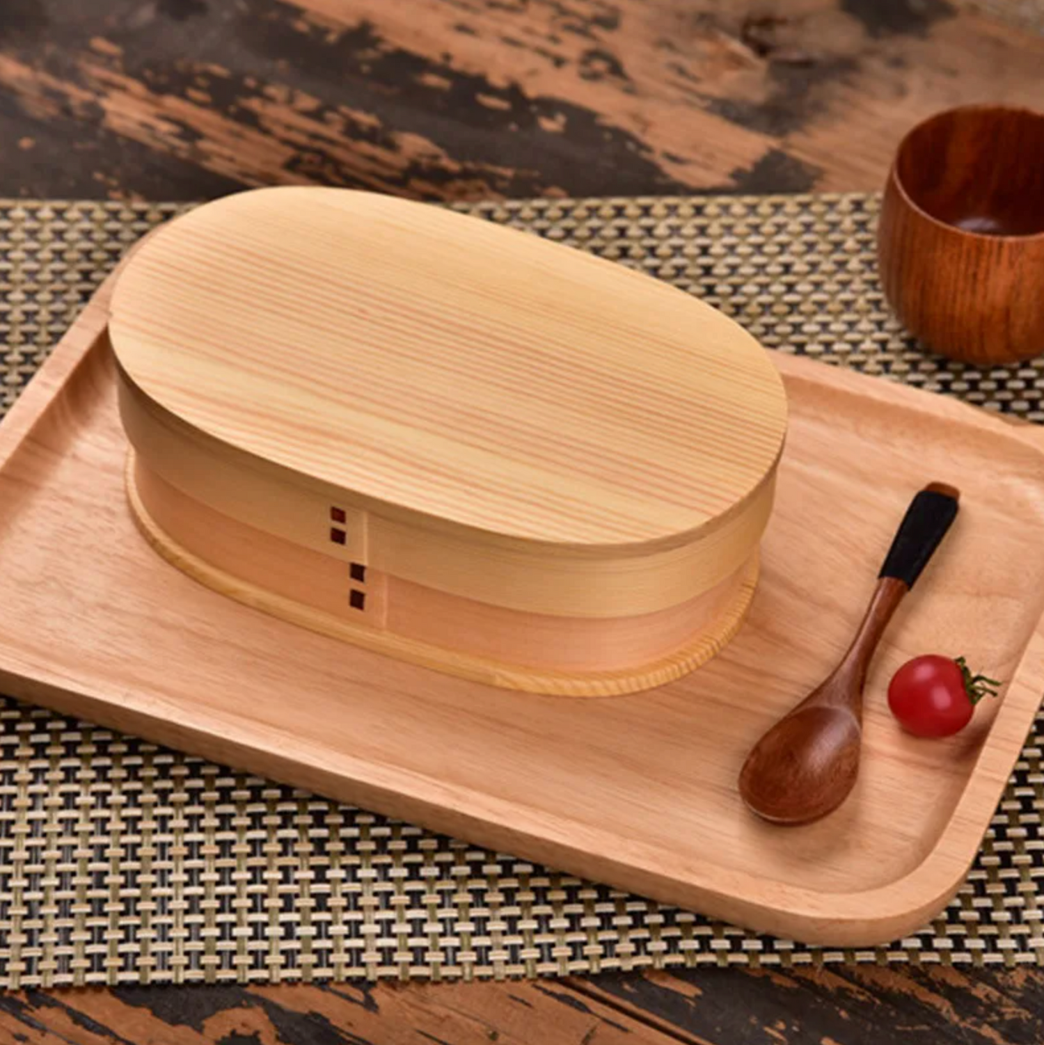 Boîte bento en bois clair