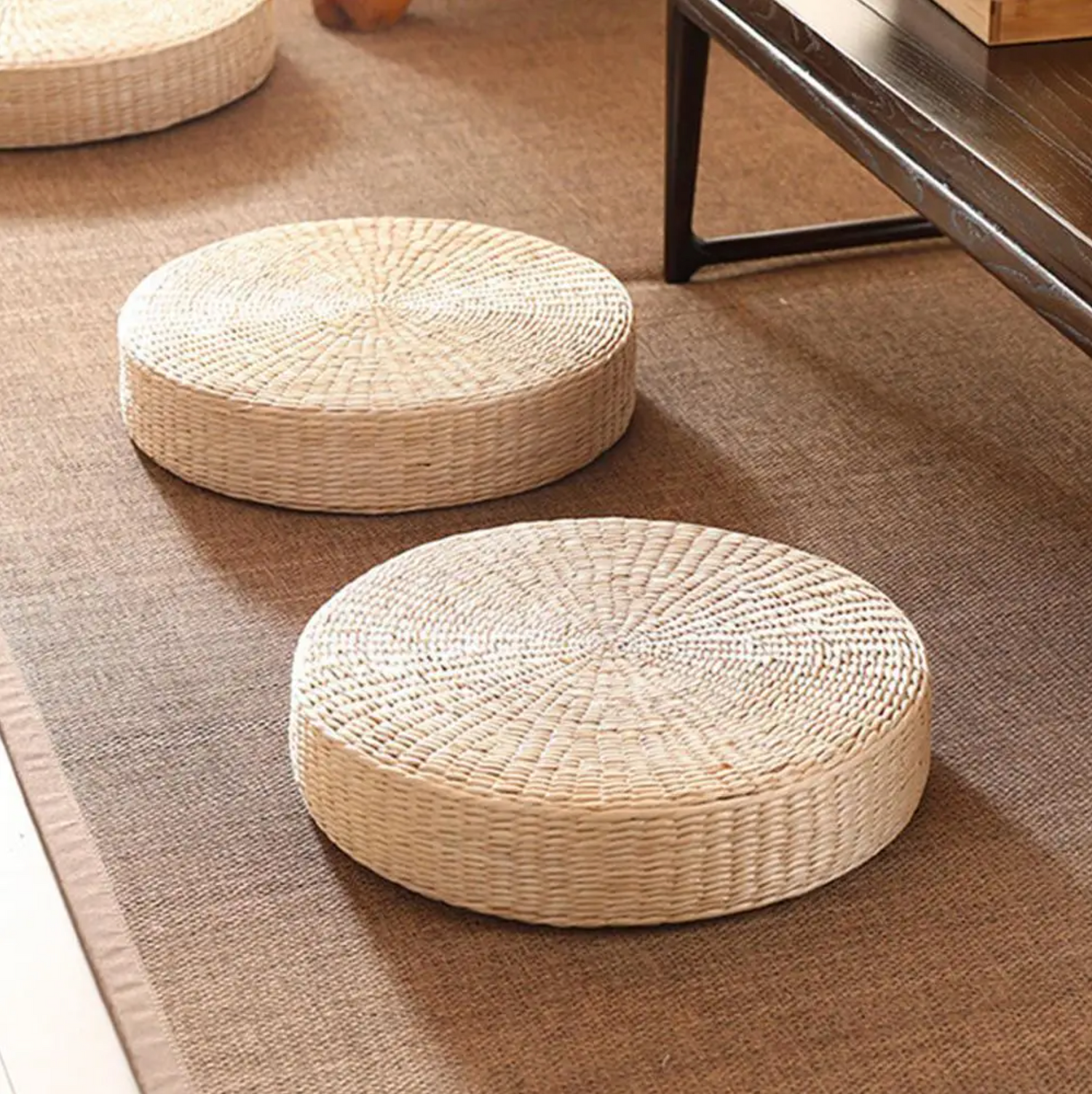 Ajoutez une touche zen à votre intérieur avec le coussin japonais rond en paille tressée