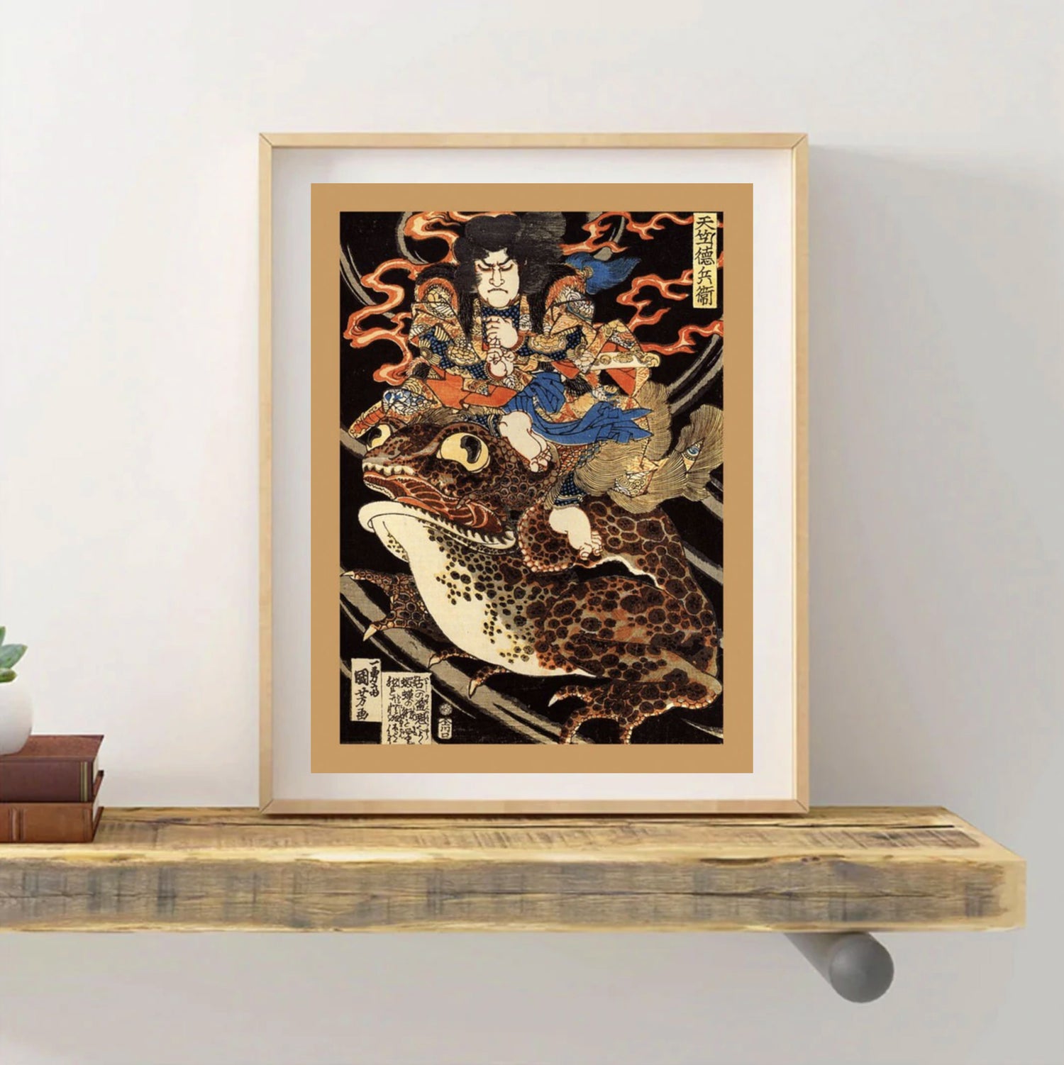 Immergez-vous dans le folklore japonais avec notre estampe japonaise crapaud, une représentation vibrante et pleine de caractère qui capture l'essence de l'art traditionnel japonais. Cette œuvre saisissante met en scène un valeureux guerrier chevauchant un crapaud géant, une imagerie puissante issue des mythes et légendes du Japon ancien. Les couleurs riches et la dynamique de la scène font de cette estampe un sujet de conversation captivant, ainsi qu'une déclaration audacieuse dans n'importe quelle pièce.
