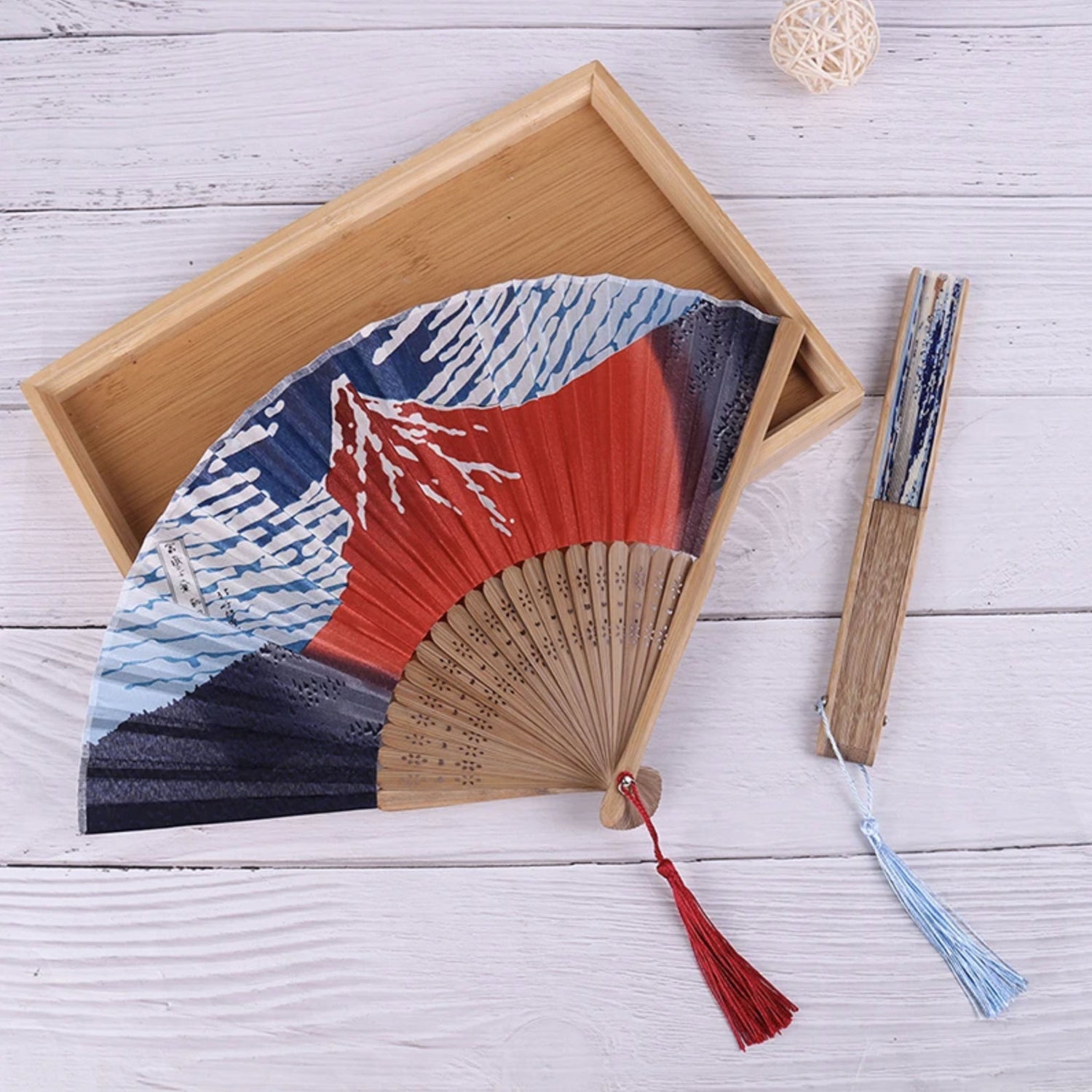 Fabriqué avec soin, l'éventail combine une osature en bambou pliable solide avec une toile finement imprimée, rendant justice à l'œuvre originale de Hokusai. Qu'il s'agisse d'un ajout à votre collection personnelle ou d'un cadeau pour un amateur d'art japonais, cet éventail japonais volcan est un trésor qui transcende le temps.