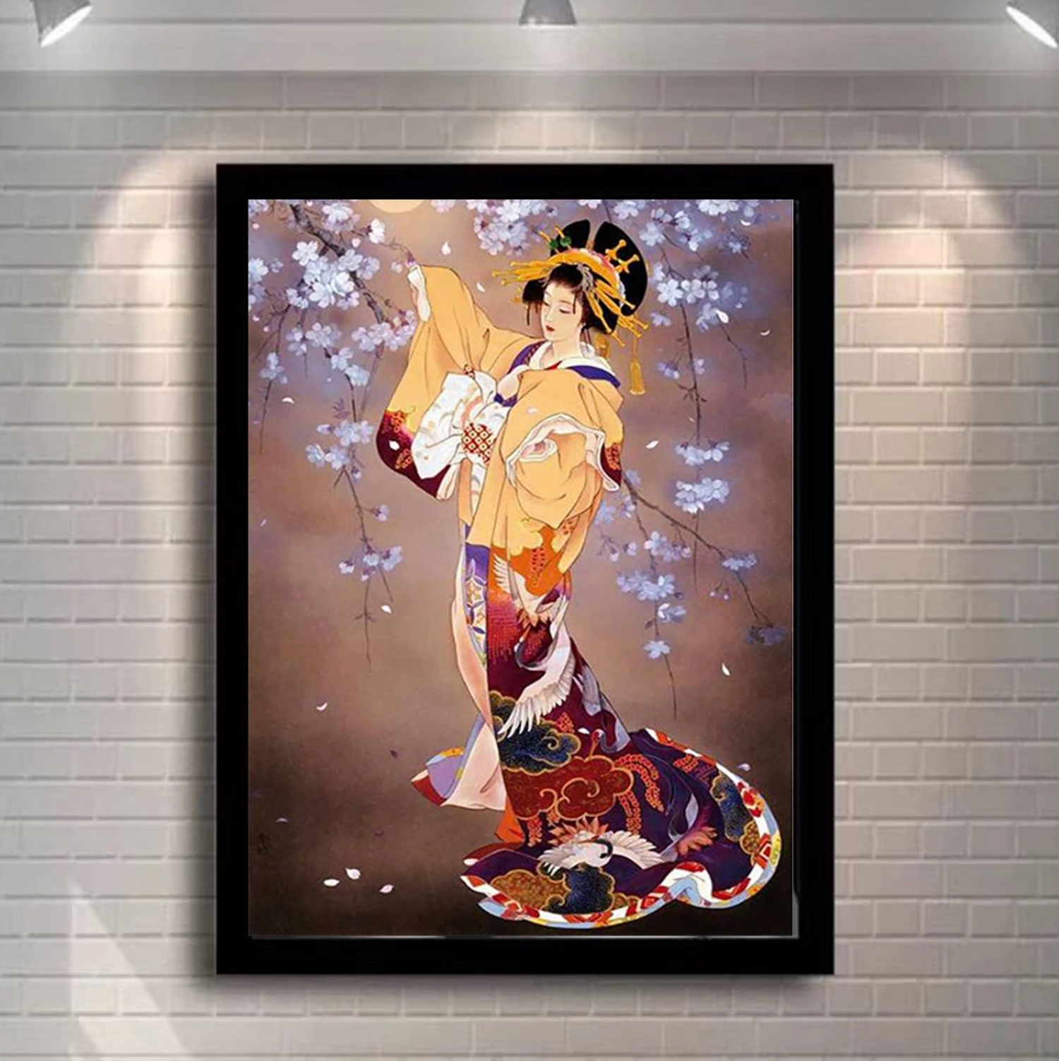 Tableau japonais geisha cerisier