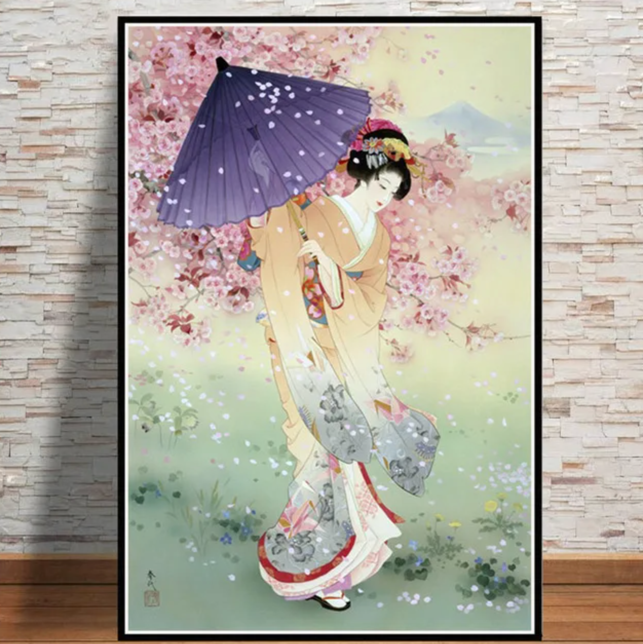 Embellissez votre espace avec le charme du tableau japonais geisha sakura