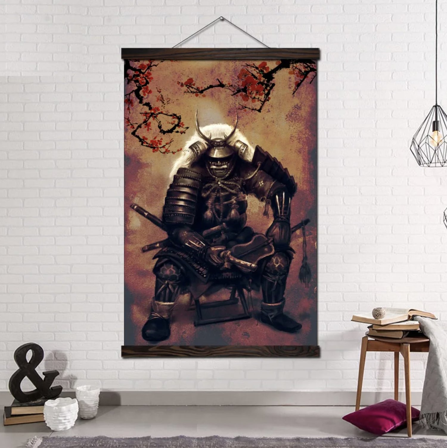 Tableau japonais vintage samouraï - une pièce maîtresse captivante qui apporte l'essence du Japon féodal à votre intérieur. Ce tableau représente un samouraï en armure complète, suggérant force et dignité, un ajout intemporel à toute collection d'art. Le contraste entre les couleurs vives et la touche rustique de la toile évoque la beauté dans l'ancienneté et l'honneur dans la tradition.