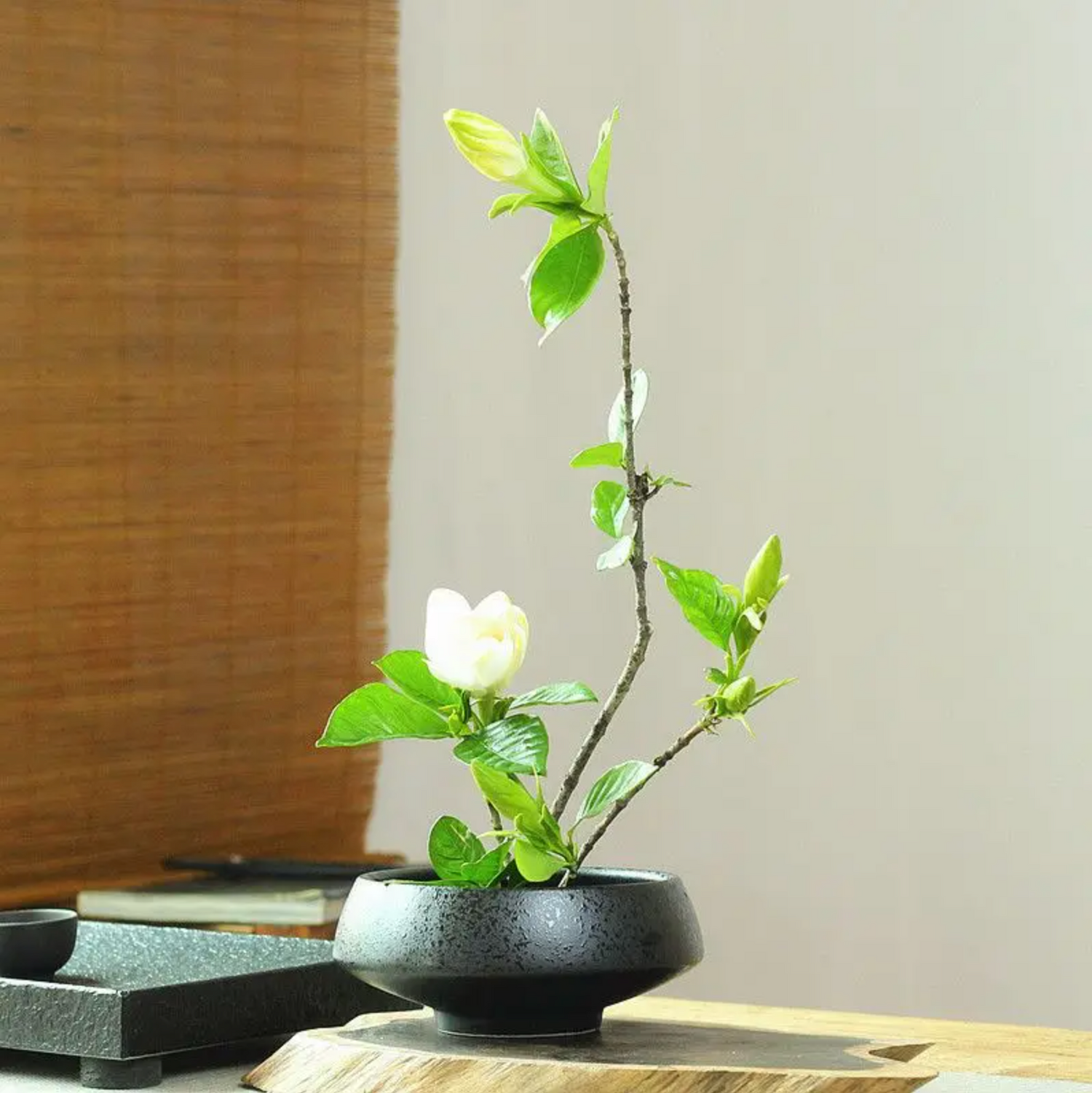 Le vase ikebana moribana noir rond en hauteur est fabriqué en céramique de haute qualité, assurant durabilité et robustesse. Il est non seulement un objet décoratif unique, mais aussi un instrument permettant de mettre en valeur la beauté naturelle et la simplicité des arrangements floraux, conformément aux principes de l’ikebana.