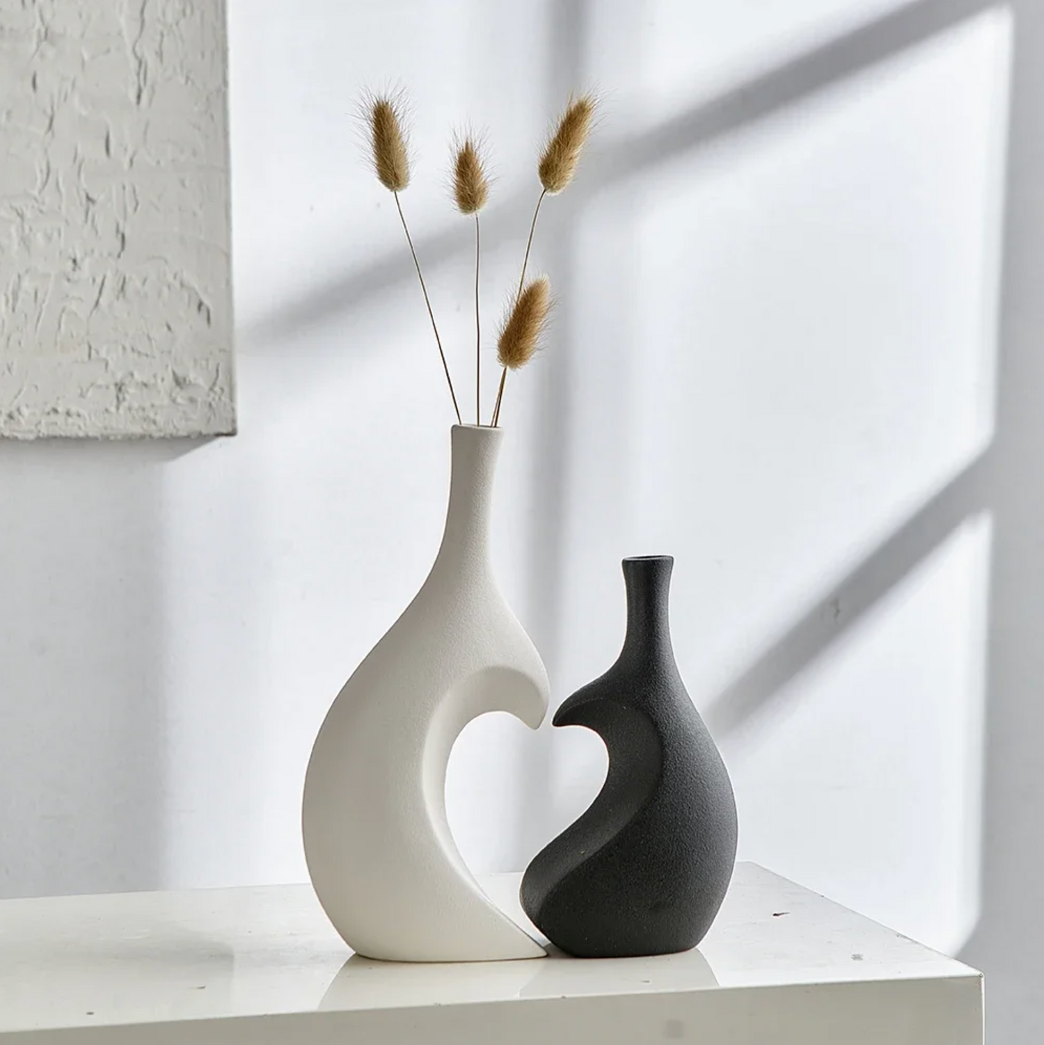Ce vase japonais noir et blanc est une pièce d'art fonctionnelle qui incarne la philosophie esthétique du Wabi-Sabi, valorisant la simplicité et l'imperfection élégante. Son design épuré et sa forme évoquent la paix et l'harmonie, faisant de ce vase bien plus qu'un simple réceptacle pour vos fleurs; c'est une œuvre d'art à part entière. La couleur contrastante des deux vases lorsqu'ils sont placés côte à côte crée une image saisissante qui rappelle le yin et le yang, des éléments fondamentaux de la philosophie orientale.