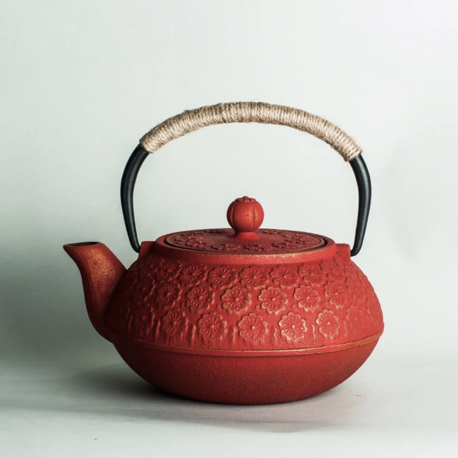 La théière japonaise rouge est une véritable invitation à célébrer la cérémonie du thé avec distinction et style. Fabriquée en fonte robuste, cette théière est non seulement durable, mais aussi incroyablement belle avec sa finition rouge vif et ses motifs floraux traditionnels en relief. La poignée recouverte de matériau naturel offre une touche rustique et un confort d'utilisation, faisant de chaque service de thé un moment spécial.